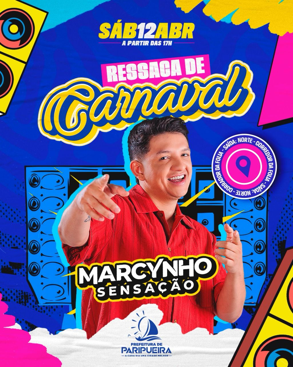 O Corredor da Folia vai ganhar vida neste sábado (12), com a Ressaca de Carnaval de Paripueira. A partir das 17h, o trio elétrico com Marcynho Sensação sairá da Praça do Norte e seguirá até o totem “Eu Amo Paripueira”, na orla, arrastando a multidão pelas principais ruas da cidade.