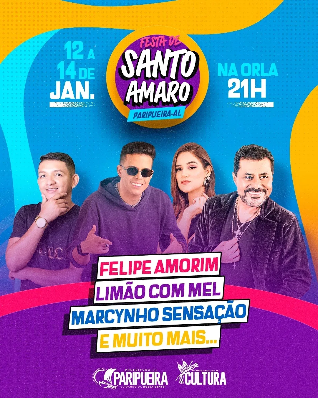 Marcynho Sensação, Felipe Amorim e Limão com Mel são atrações da Festa de Santo Amaro em Paripueira
