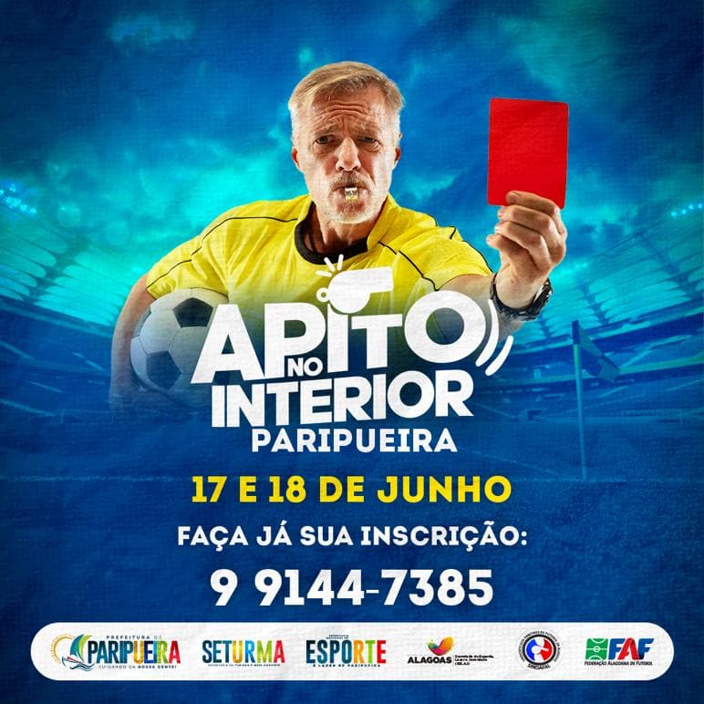 10 Jun APITO NO INTERIOR Antônio Durante os dias 17 e 18 de junho, o município de Paripueira vai sediar o projeto "Apito no Interior". A capacitação será teorica e pratica e terá certificação. faça já sua inscrição!!!