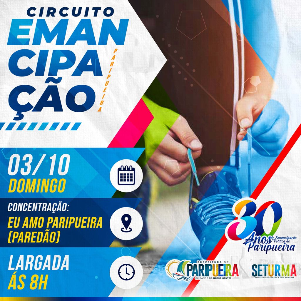 Em comemoração aos 30 anos de Paripueira teremos o Circuito da Emancipação. O Circuito, realizado pela Seturma, acontecerá no domingo, dia 3 de outubro.