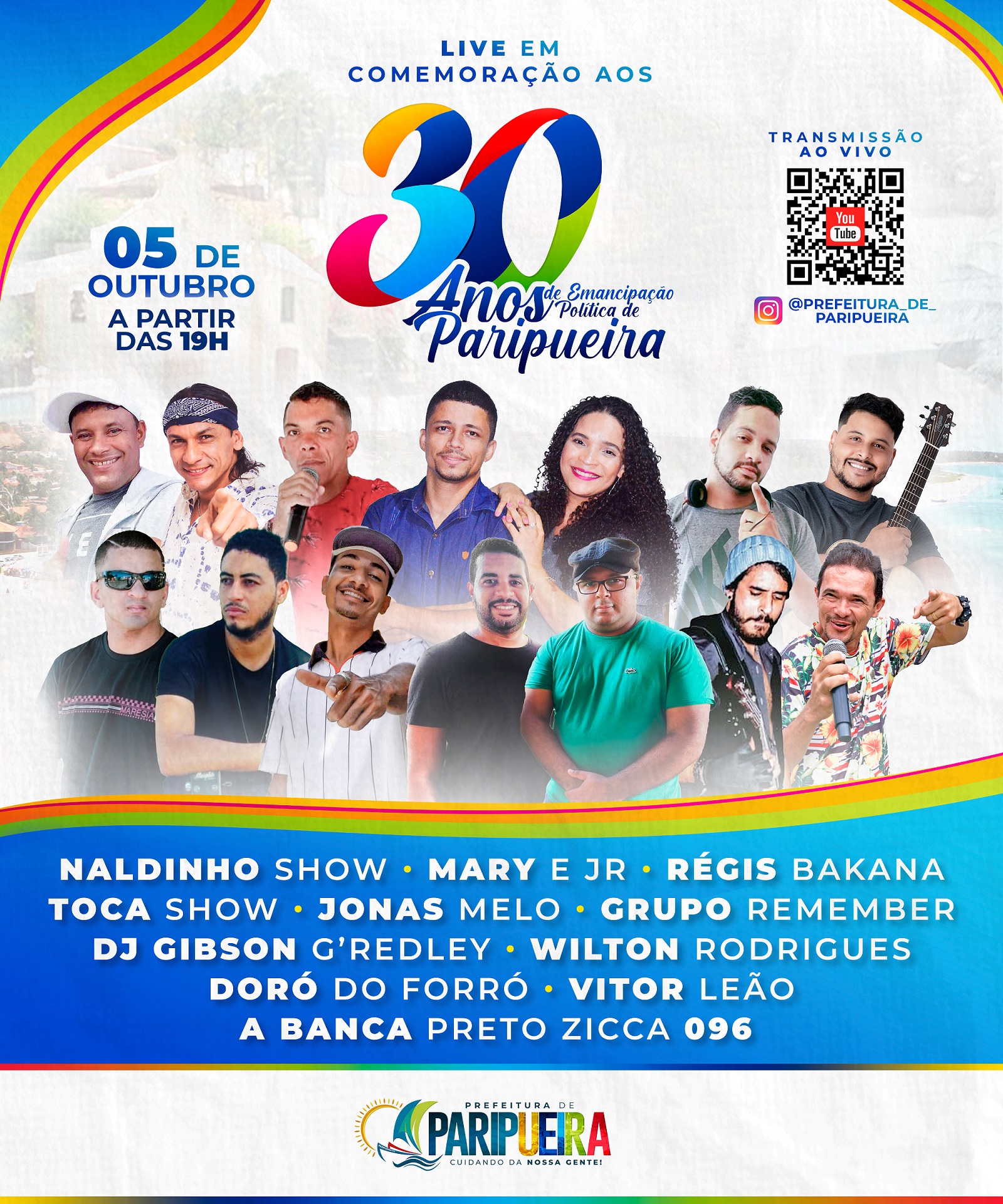 Paripueira comemora 30 anos com shows online